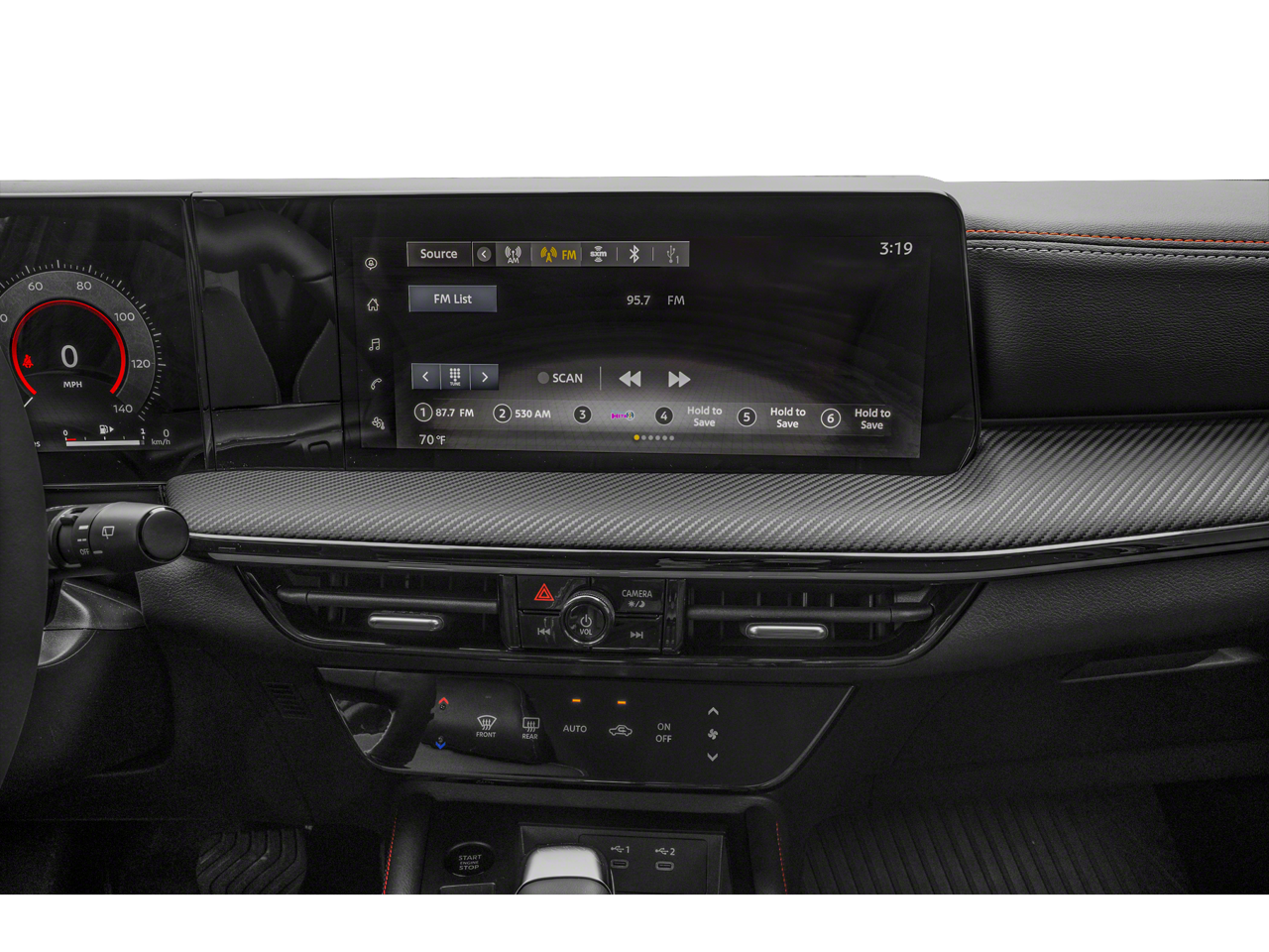- Radio: AM/FM Audio System -inc: 12.3 color touchscreen display w/6 speakers, Bluetooth hands-free phone system, streaming audio via Bluetooth, audio and Bluetooth steering wheel switches, USB C (data and charge) (front), rear USB type C port (2), NissanConnect featuring wireless Apple CarPlay, wireless Android Auto, Siri eyes free, SiriusXM satellite radio w/advanced auto features and hands-free text messaging assistant